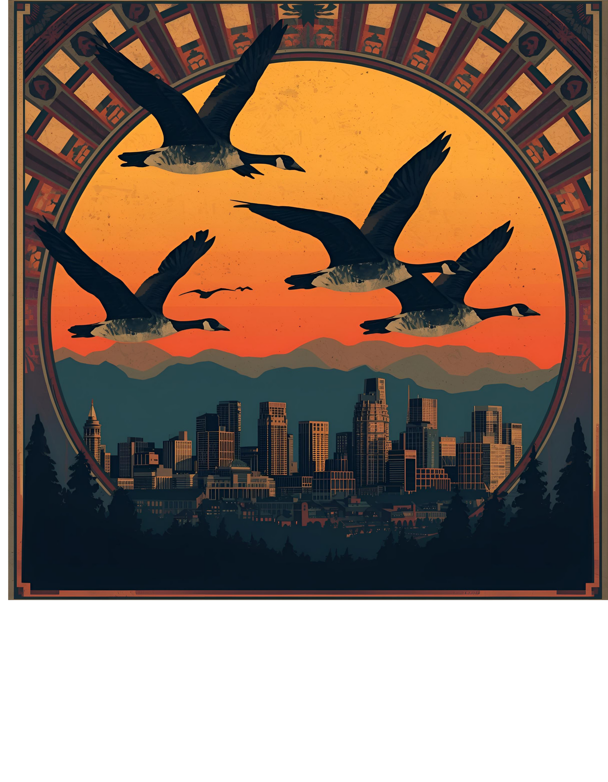 A soft, sturdy tee printed with a warm, retro sunset scene where birds glide above a skyline. The medium-weight cotton feels substantial without being heavy — it drapes in a relaxed, classic fit and keeps its shape thanks to a ribbed collar and shoulder tape. The graphic’s sunset oranges and deep silhouettes read like a quiet evening walk by the water, inviting slow moments and casual city escapes. Wear it layered under a jacket for cool-night strolls or solo on sunlit afternoons; the tear-away label and ethical cotton make it comfortable and thoughtful to wear.